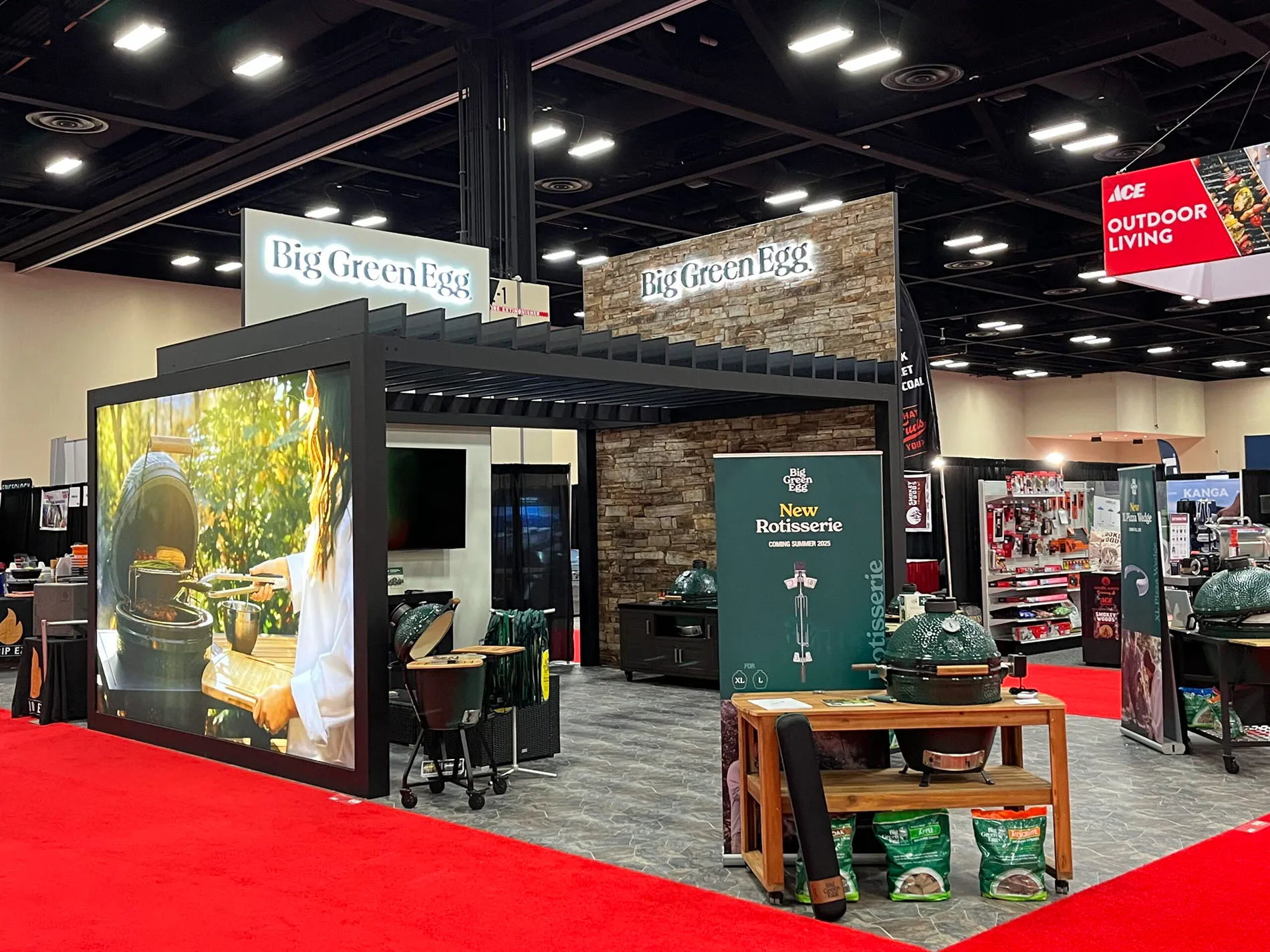 Big Green Egg needed a refreshed trade show booth that embodied the outdoor cooking experience while offering durability and flexibility for multiple events. CDI World created an immersive, modular design featuring natural textures, premium finishes, and a removable backlit wall, delivering a visually striking and adaptable booth that received overwhelming praise from both attendees and the client’s team.