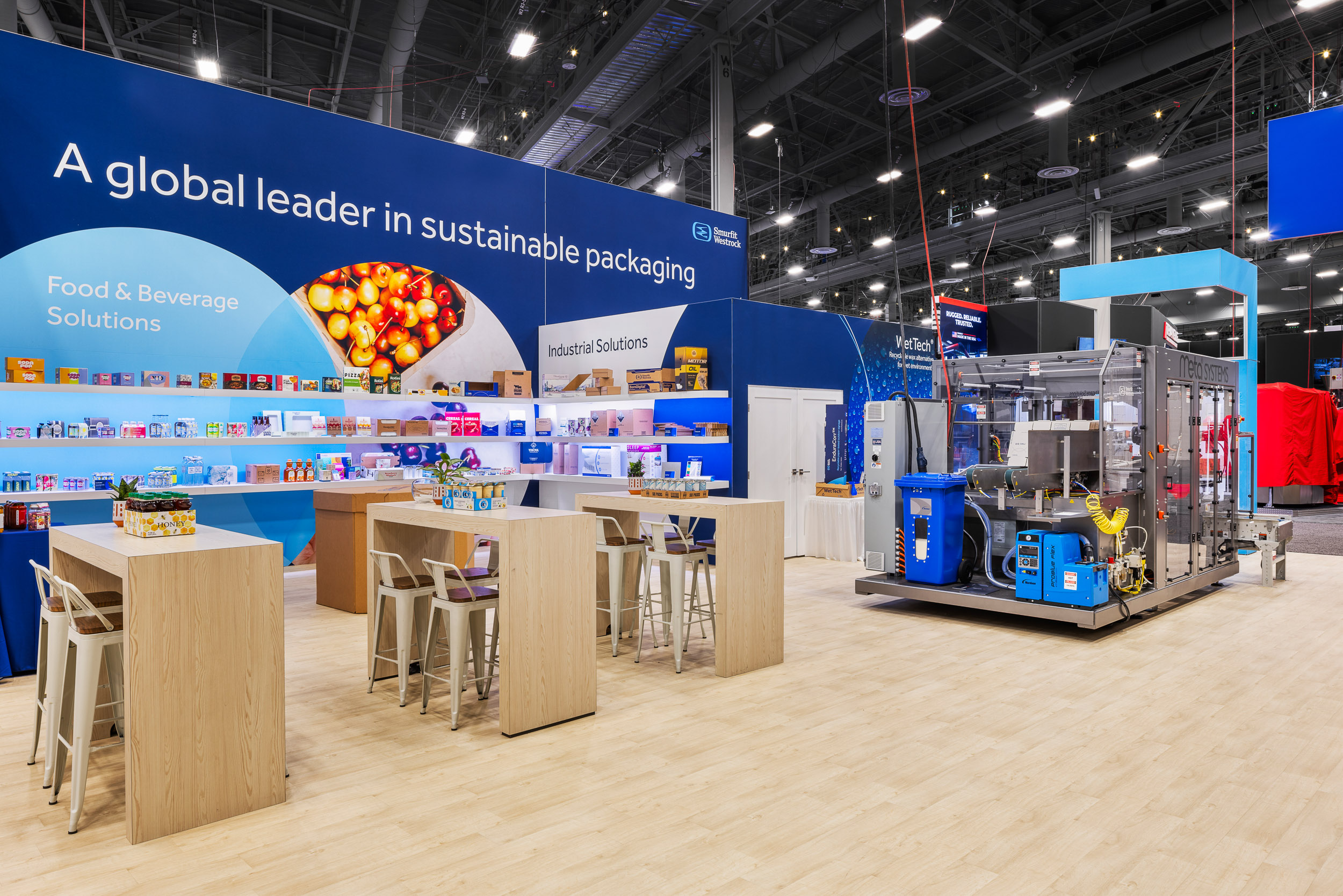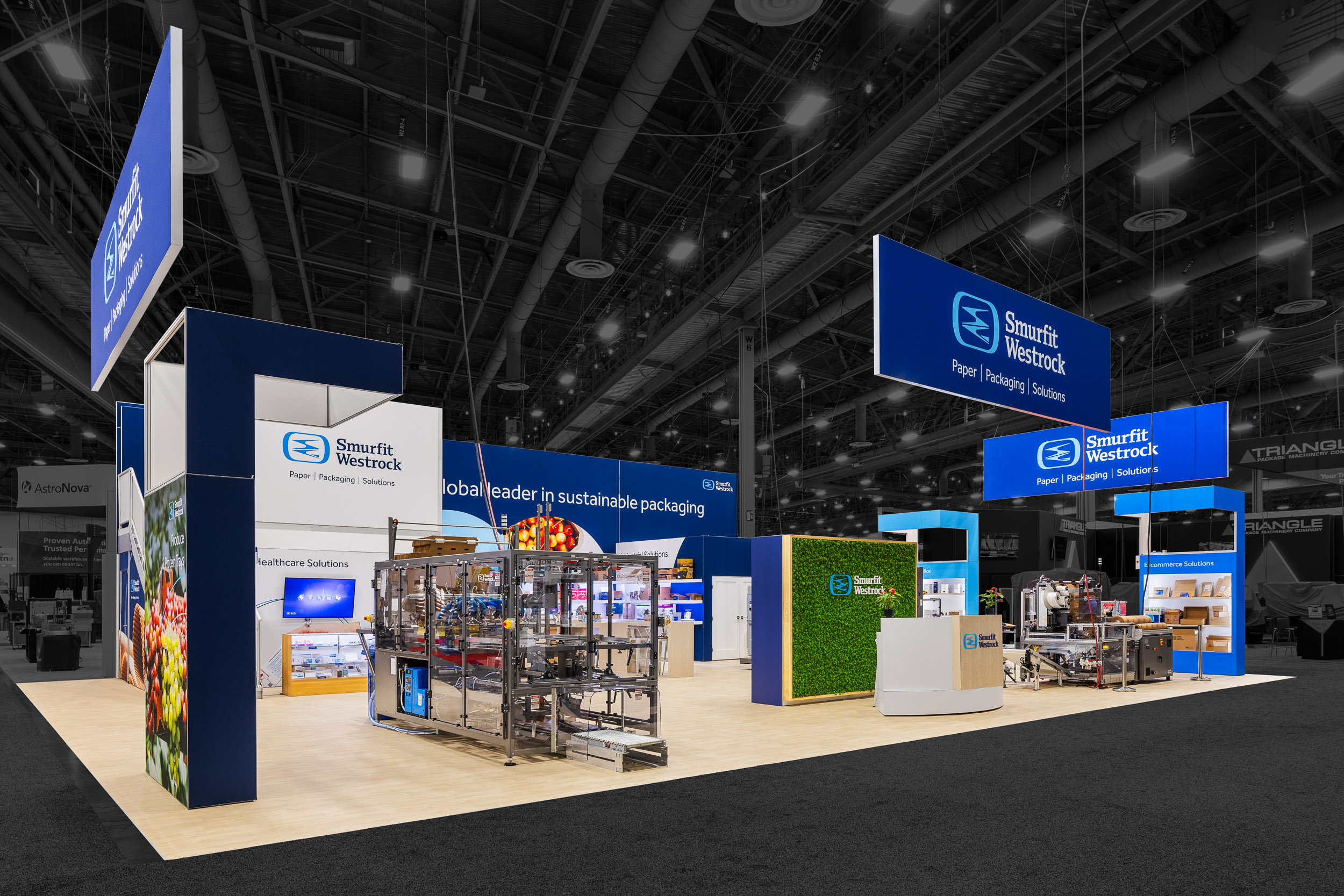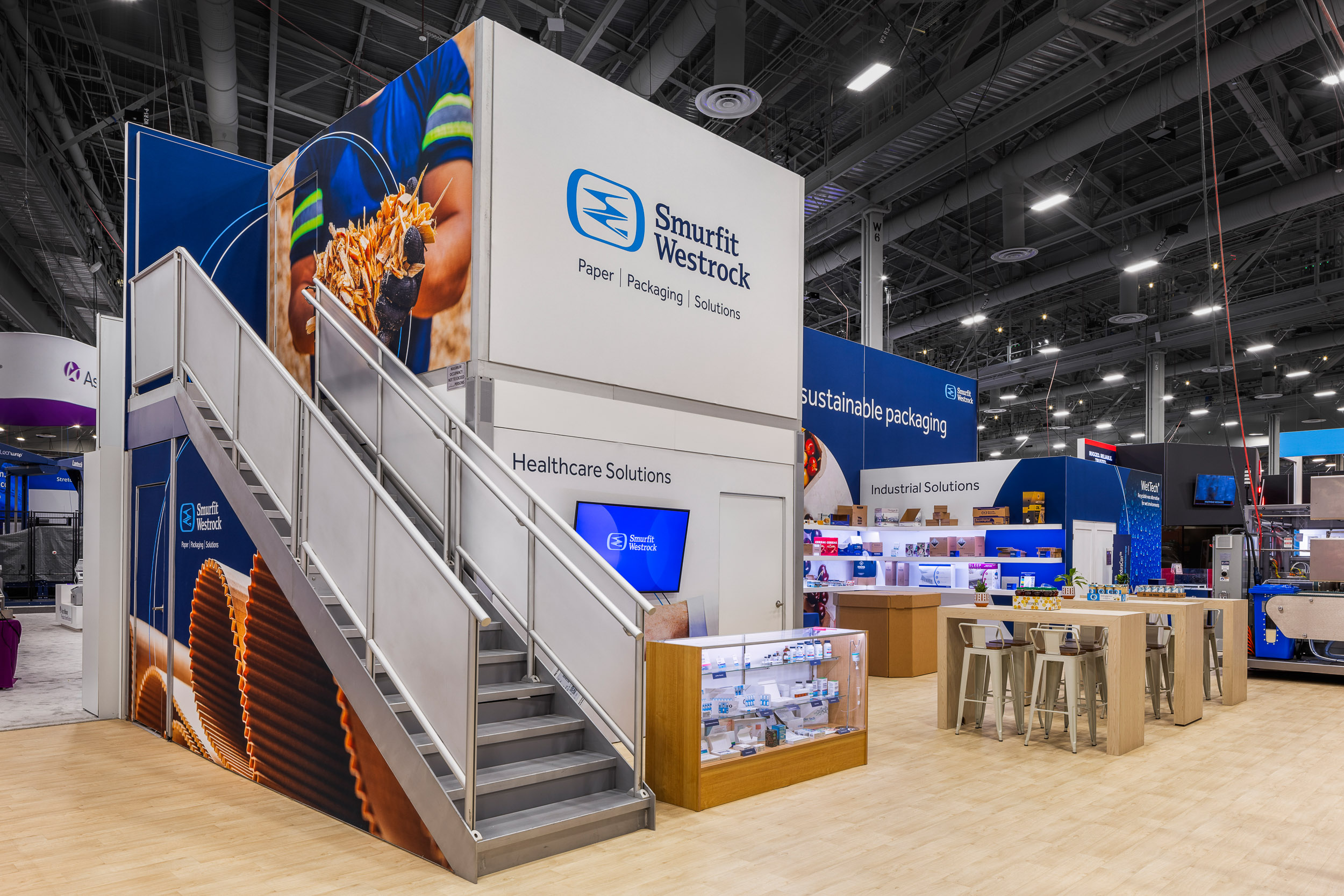 At Pack Expo, long-term partner Smurfit WestRock stood out with a double decker custom exhibit rental. Cleverly arranged existing structures and striking graphics showcased their full product range, creating the perfect space for one-on-one conversations and hands-on discovery.