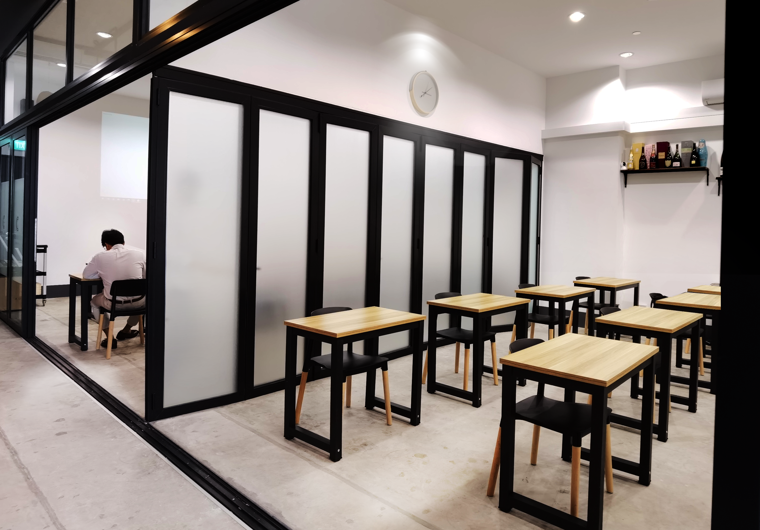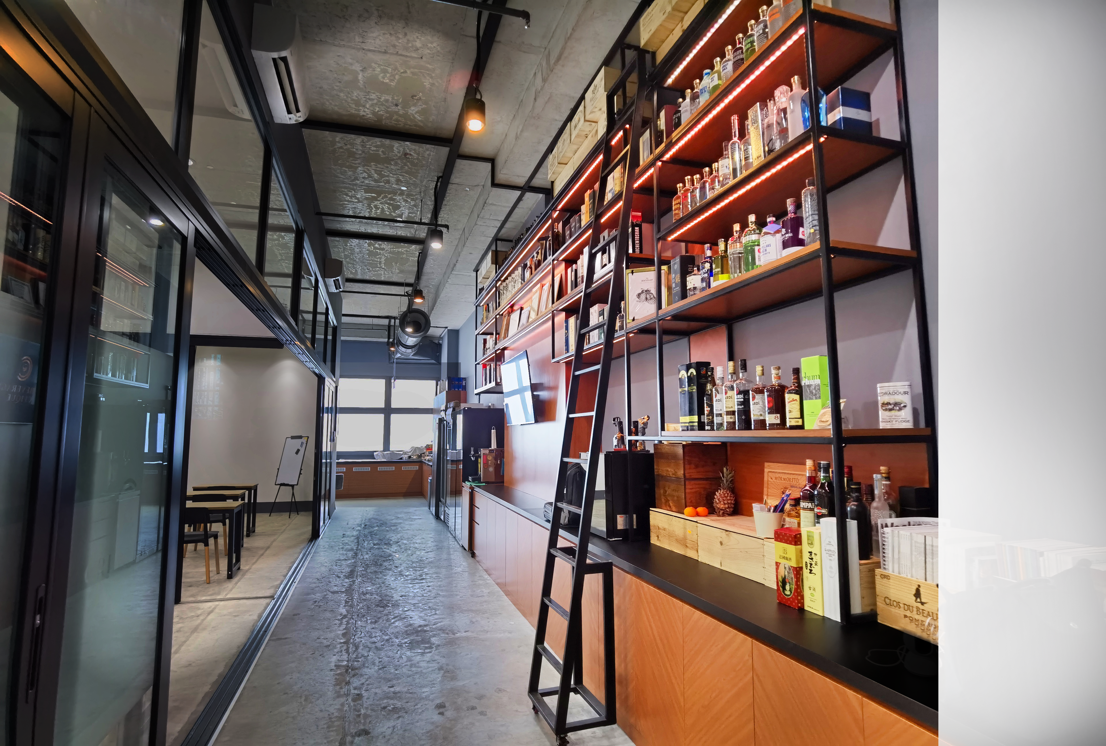 Flexibility and functionality were key requirements in this renovation of an office and training facility. A moveable ladder ensures easy access to the full height wall cabinet, and the sliding glass partitions convert the large classroom into two smaller areas. We were responsible for the design and build, as well as for project management and site installation. Completing on time meant our client could continue leading the way in providing hands-on training for professionals and enthusiasts of wine, spirits and saké.